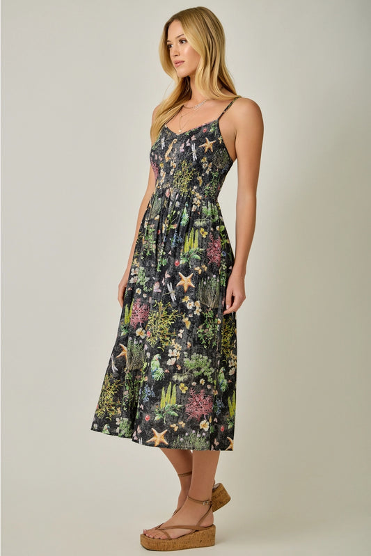Black Printed Double Gauze Smock Dress