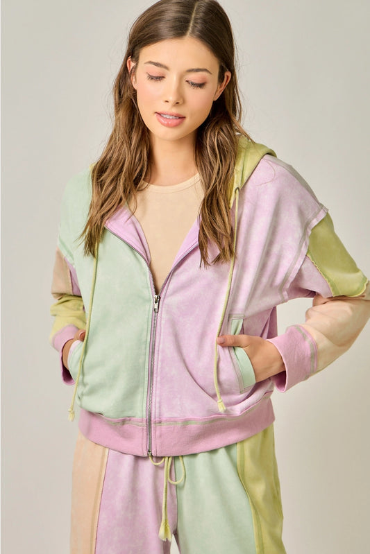 Pastel Garden Color Blocked Zip-Up Hoodie