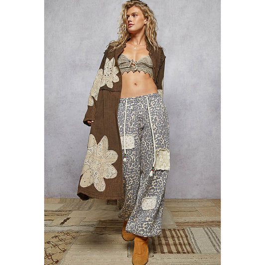 Washed Black Embroidered Gauze Floral Maxi Jacket