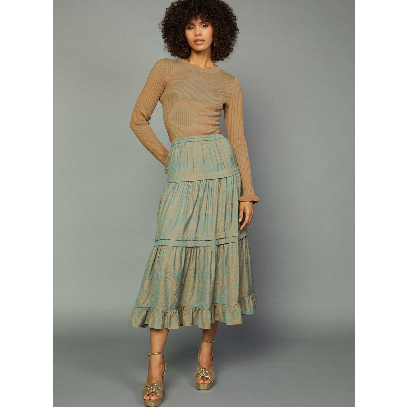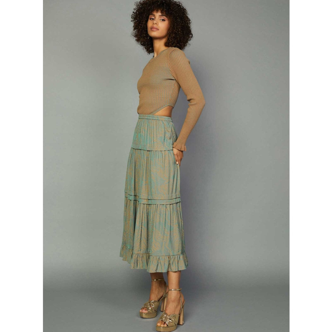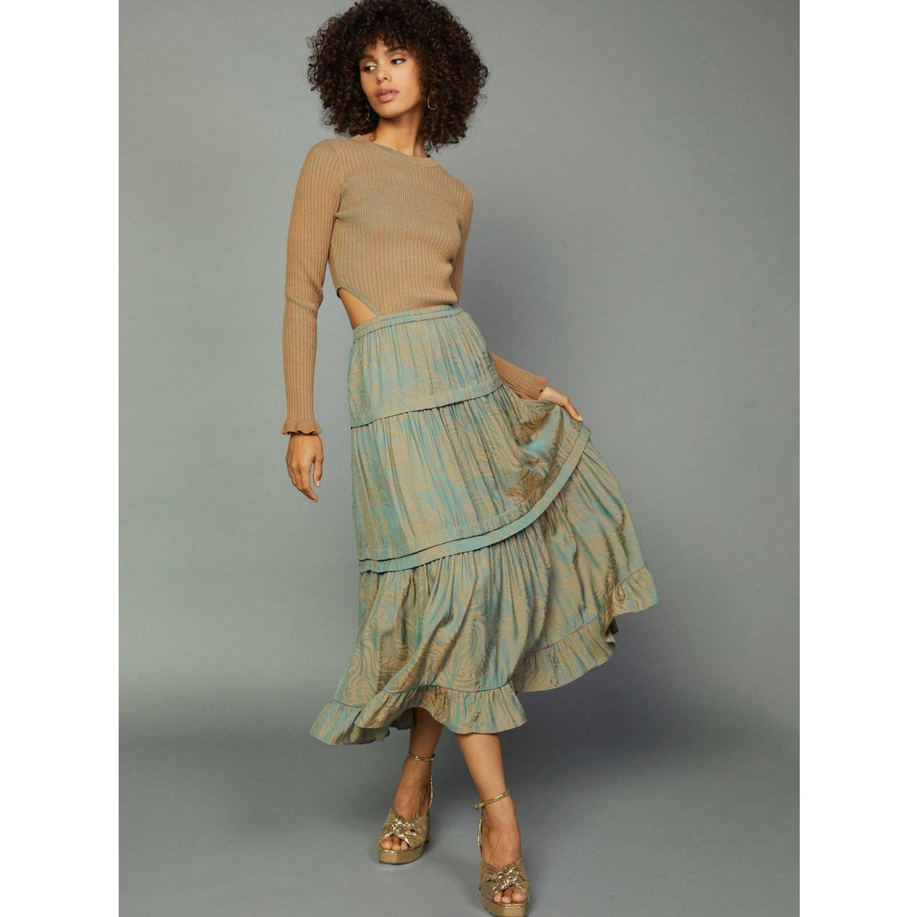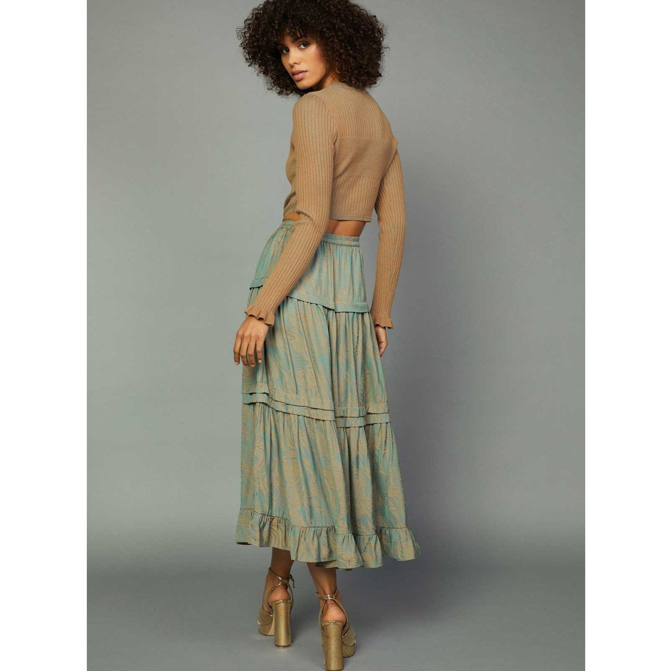 Sand Seafoam Mixed Media Cutout Knit Midi Dress