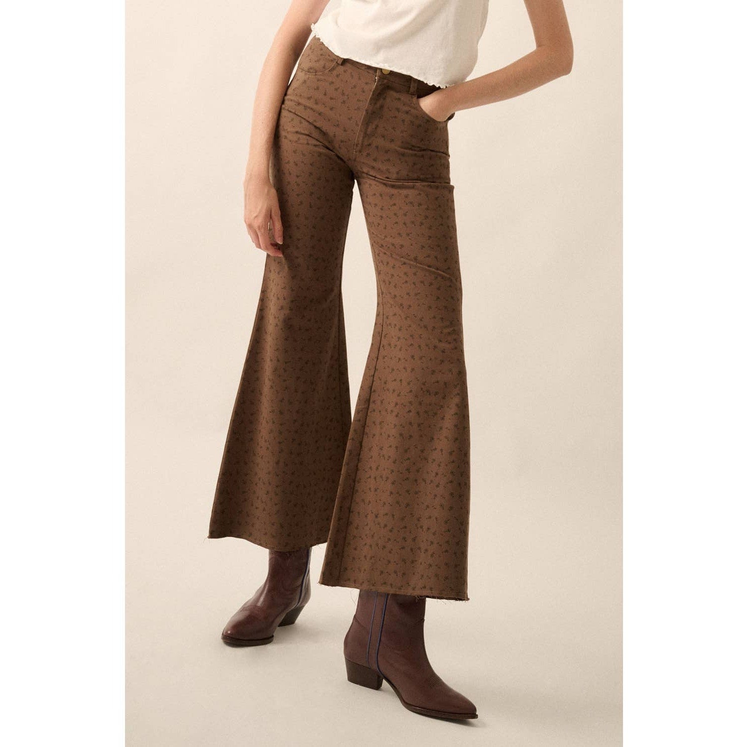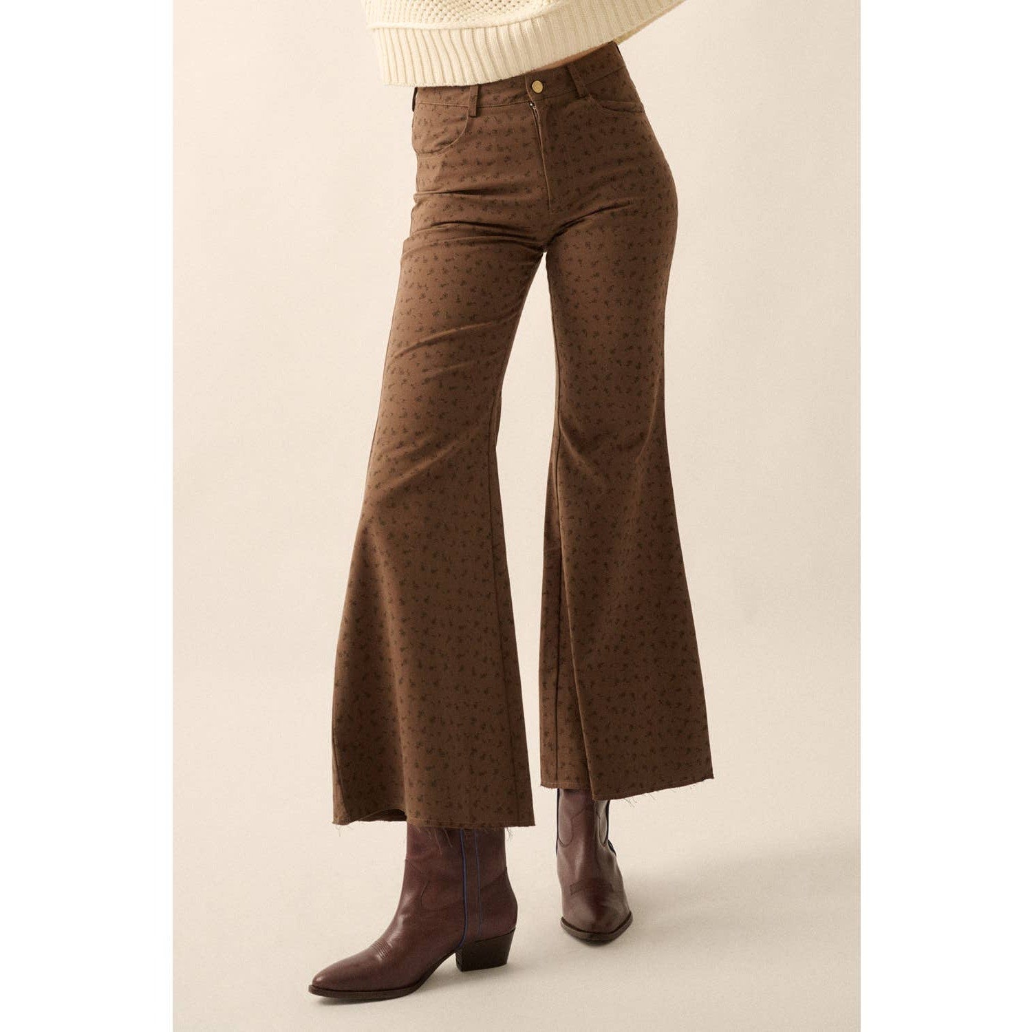 Chocolate Floral Twill Cropped High-Waist Flare Pants