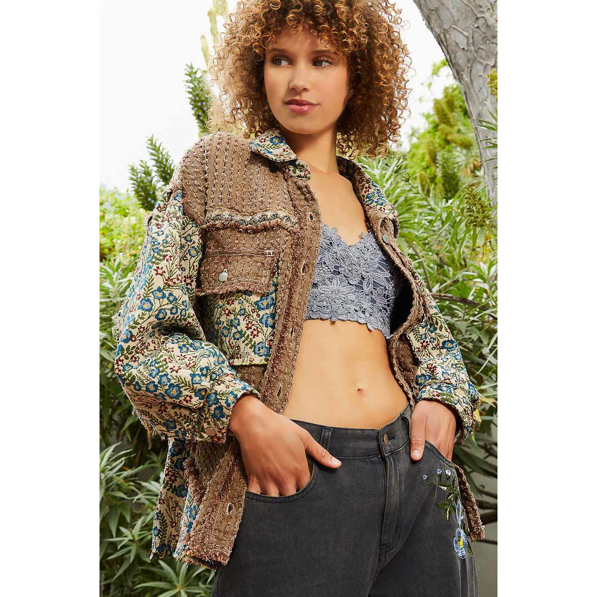 Chocolate Multi Oversized Jacquard Tapestry Button Down Floral Print Shacket