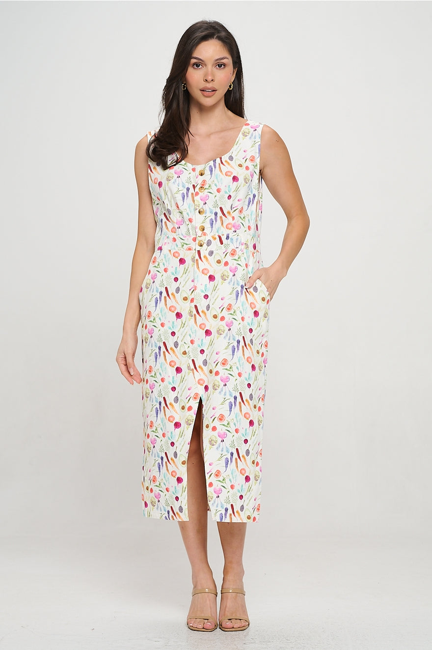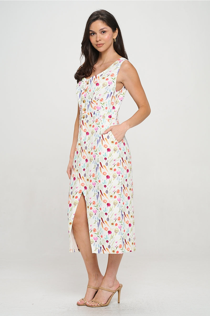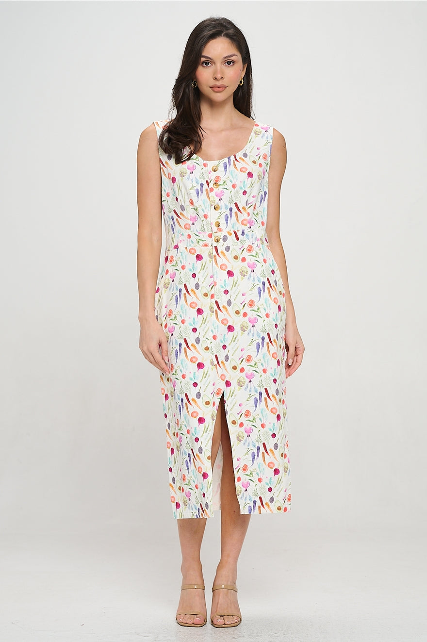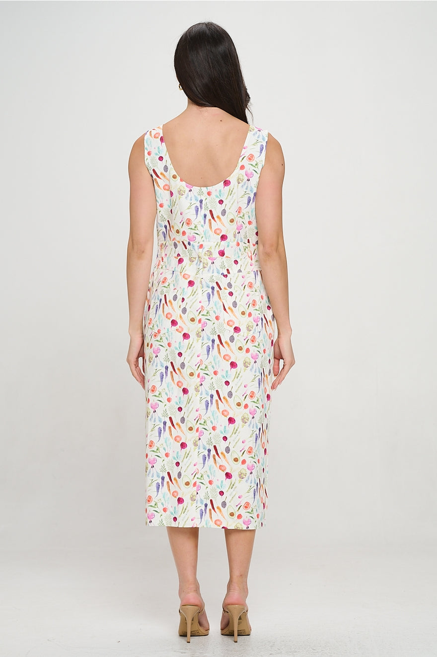 Colorful Vegetable Print Midi Dress