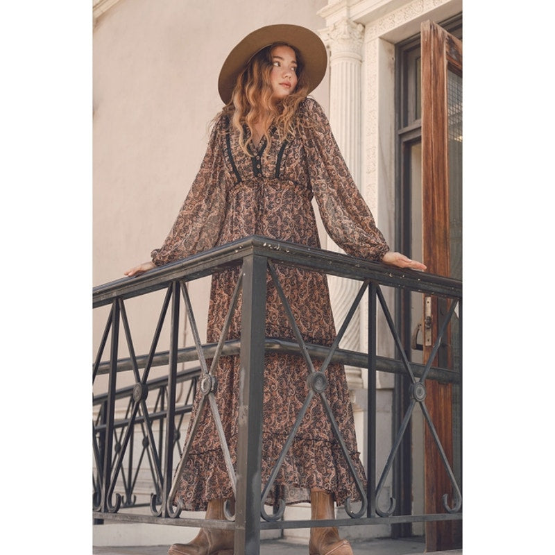 Dress Forum Black Size Small Mirage Lace Trim Tiered Maxi Dress