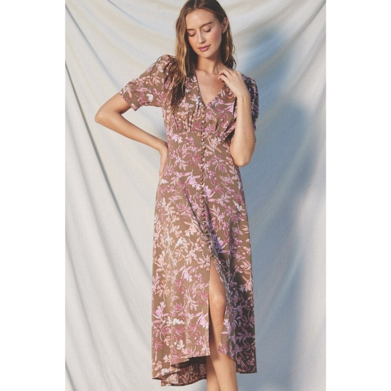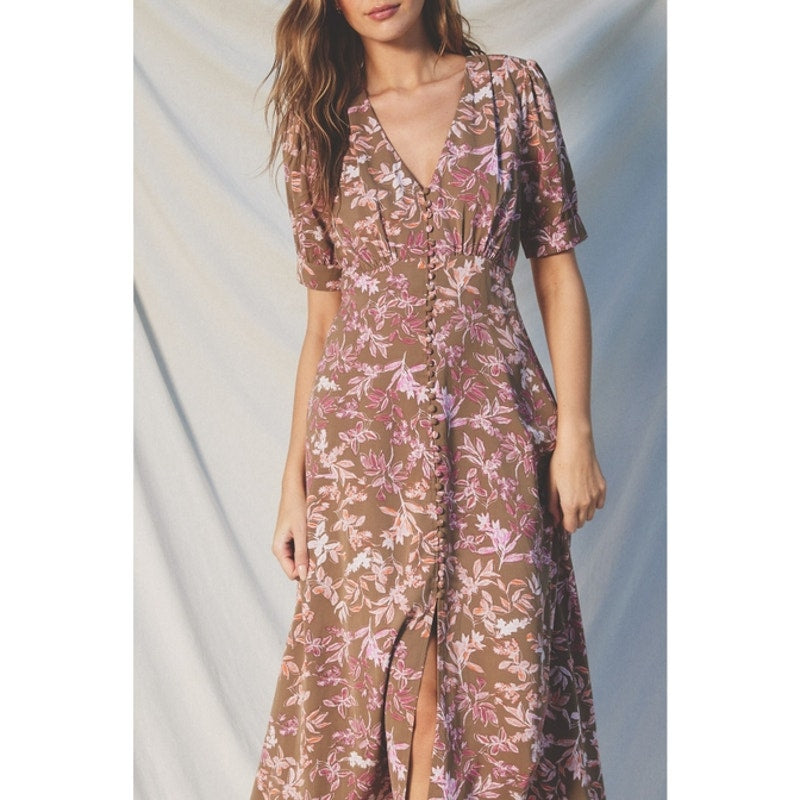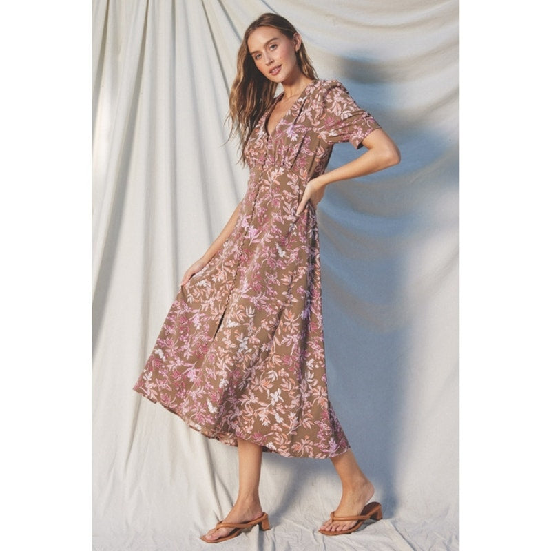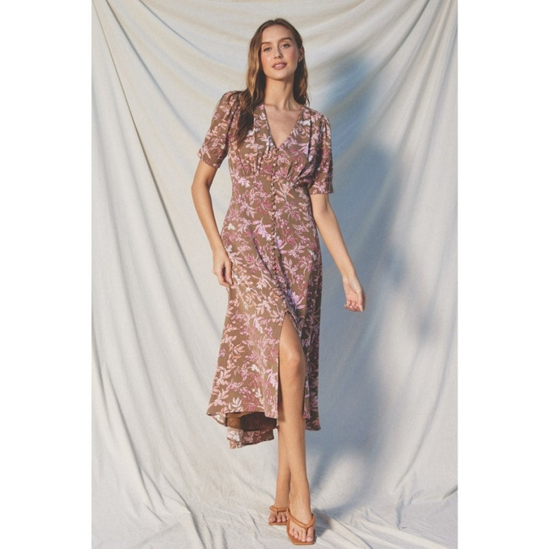 Dress Forum Mauve & Taupe Slow Dancing Button Detail Midi Dress