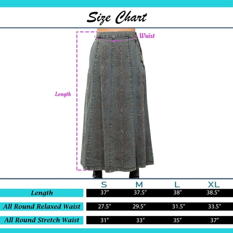 Gravel A-Line High Waist Hand Embroidered Denim Western Maxi Skirt