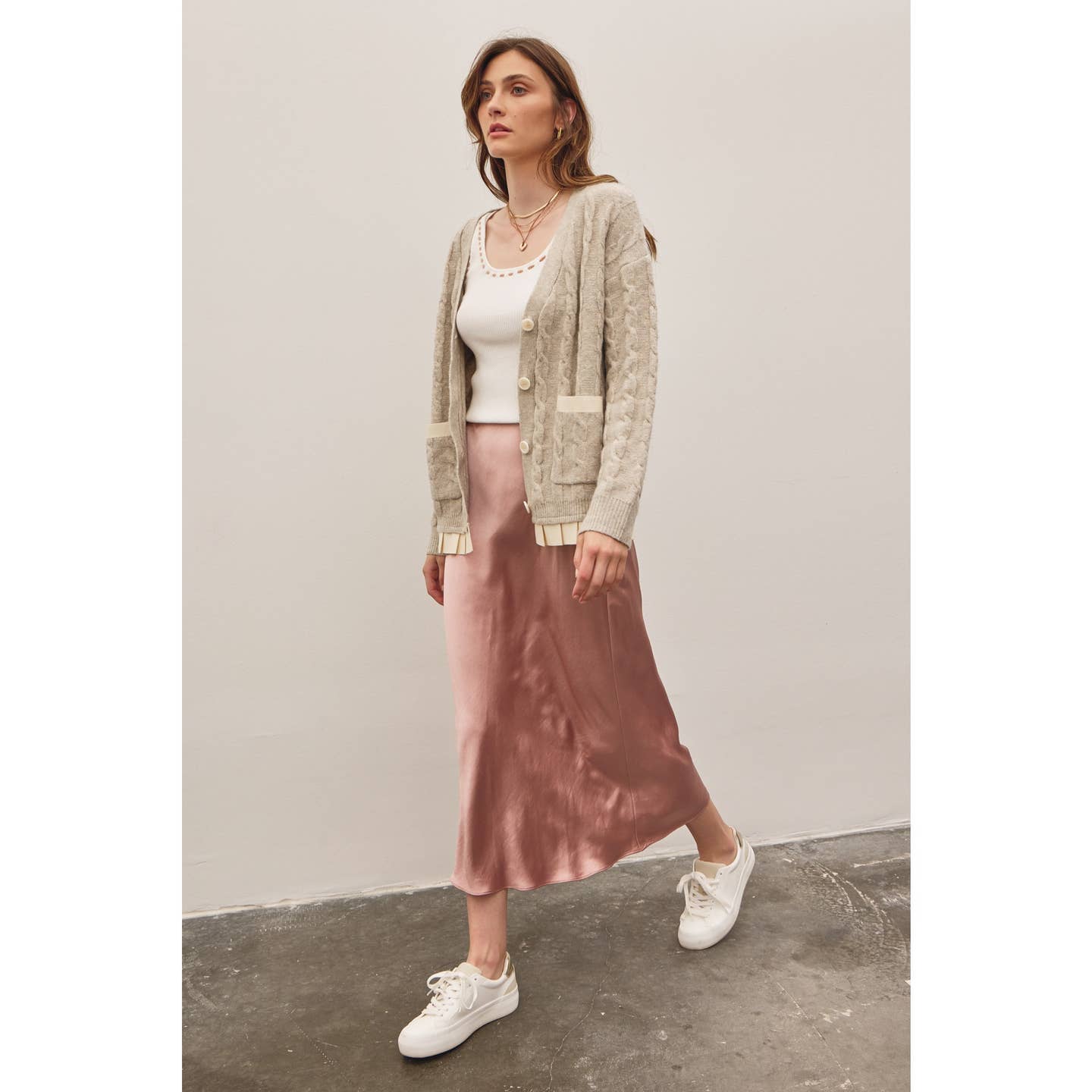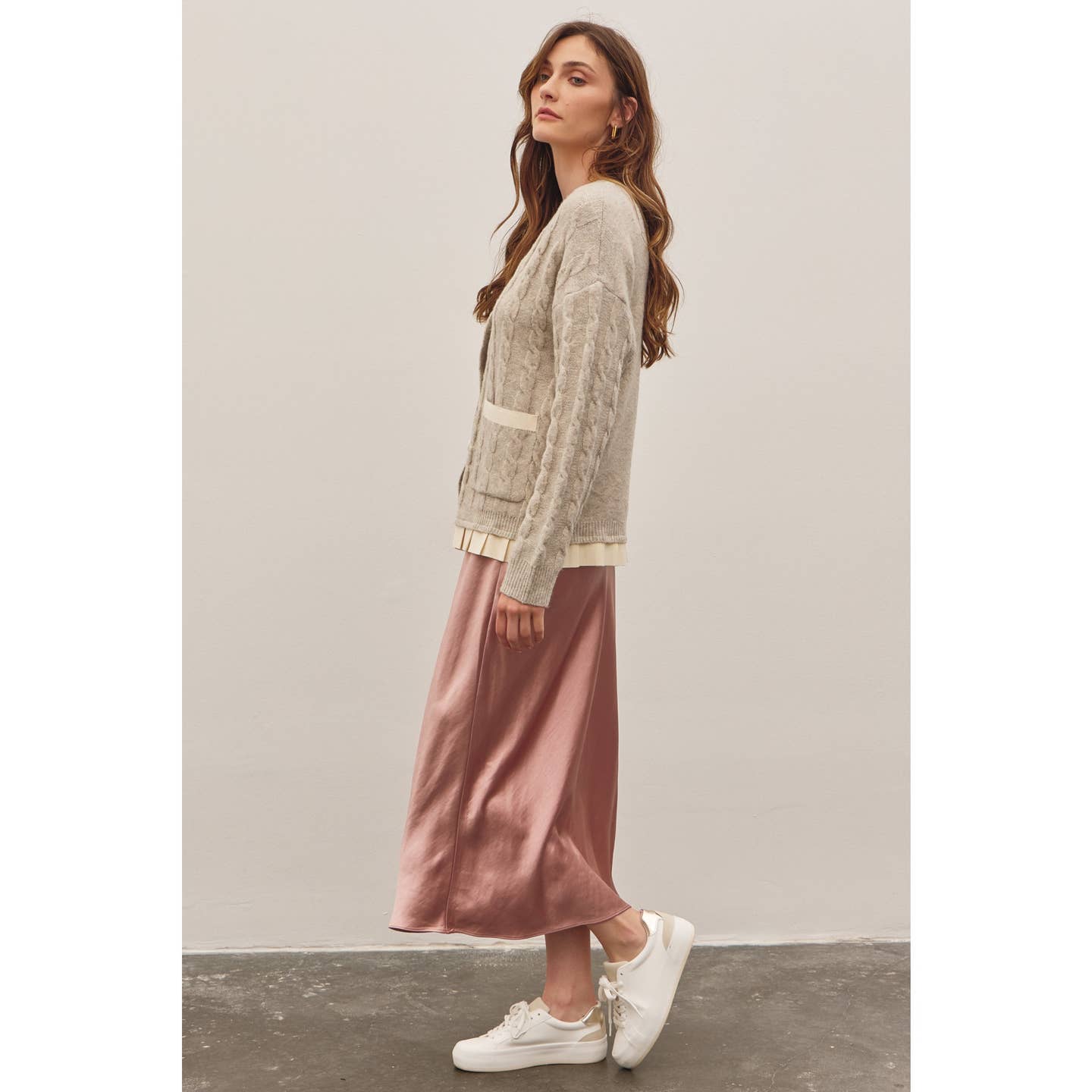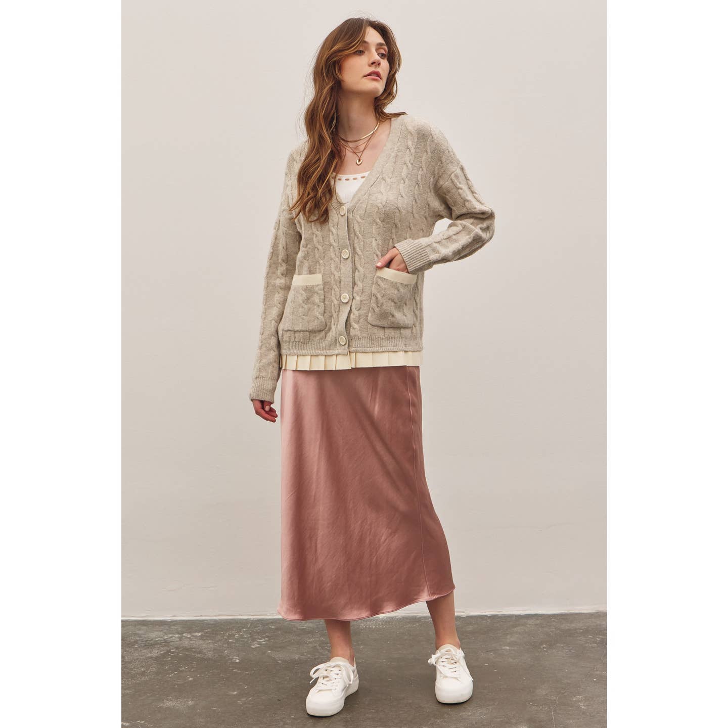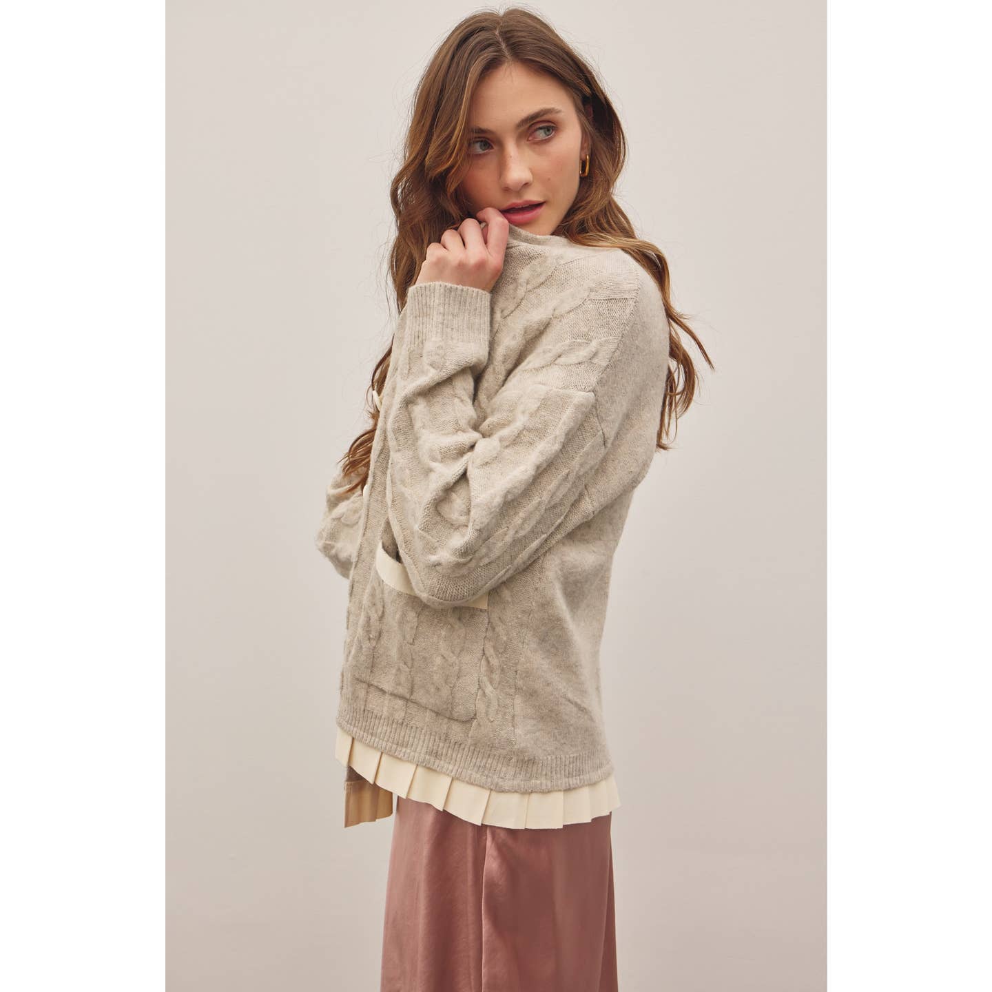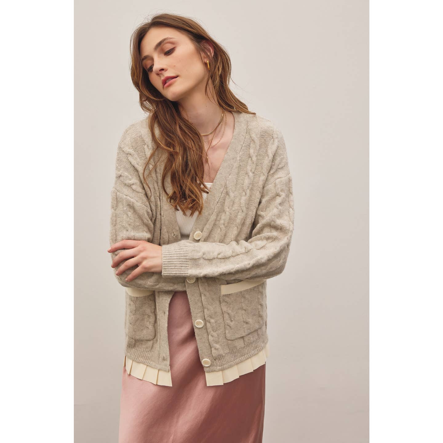 Oatmeal Button-Down Cable Knit Sweater Cardigan