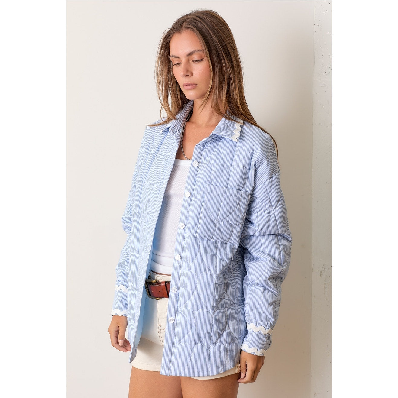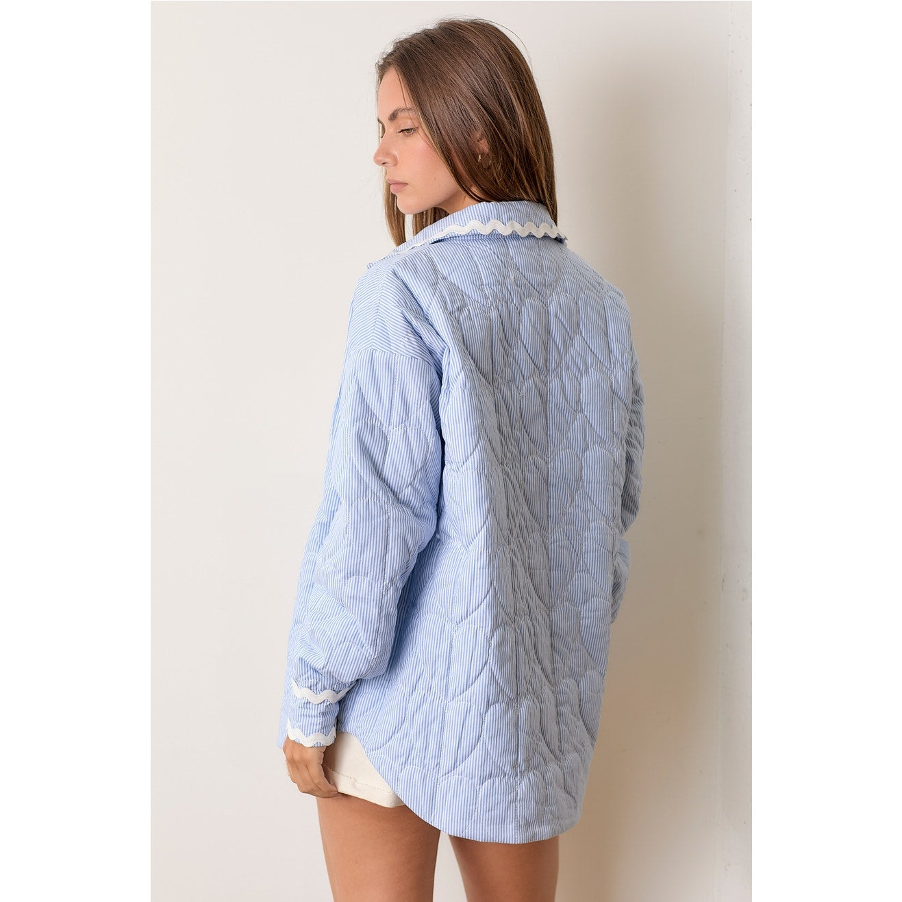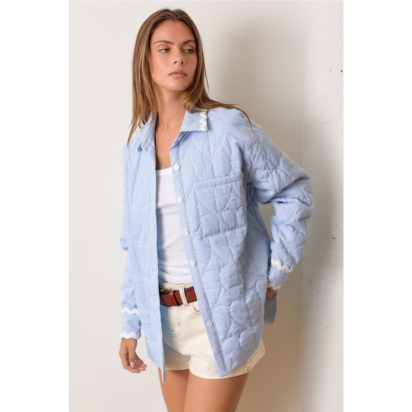 Blue Striped Quilted Shacket