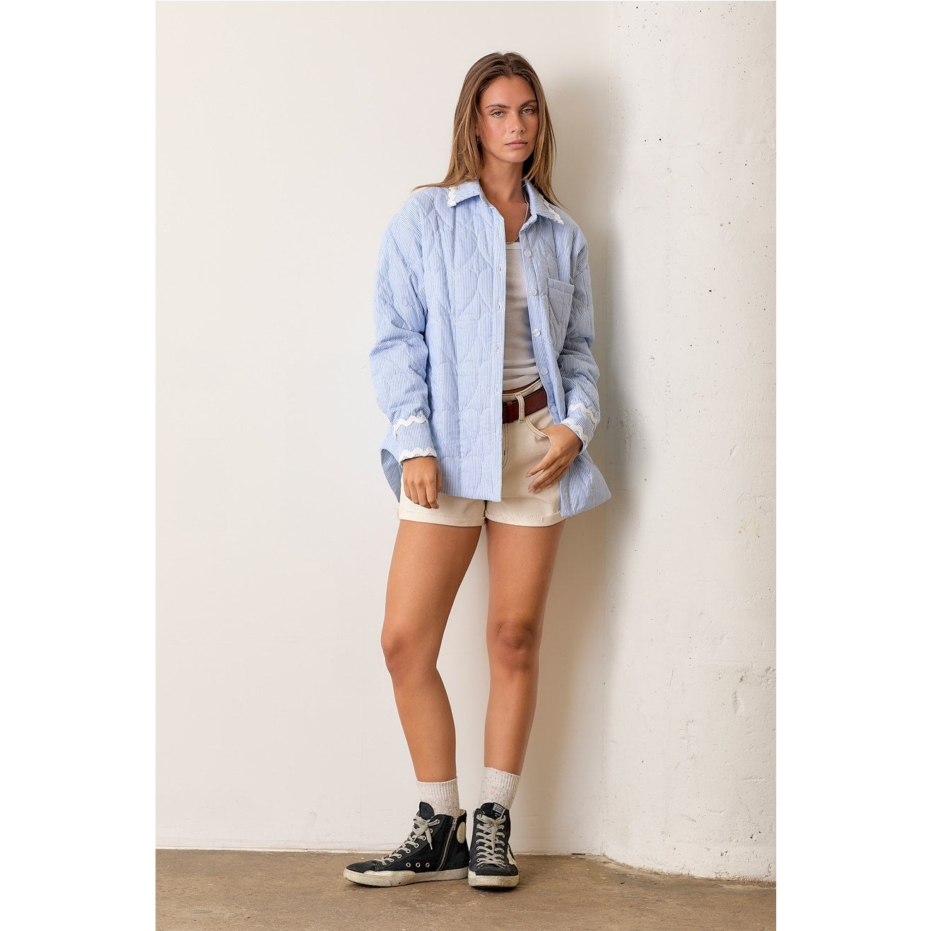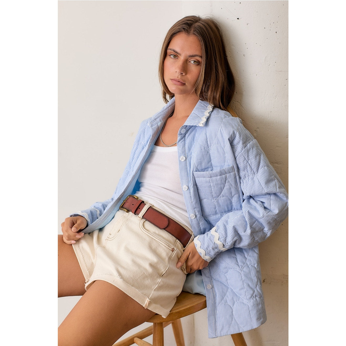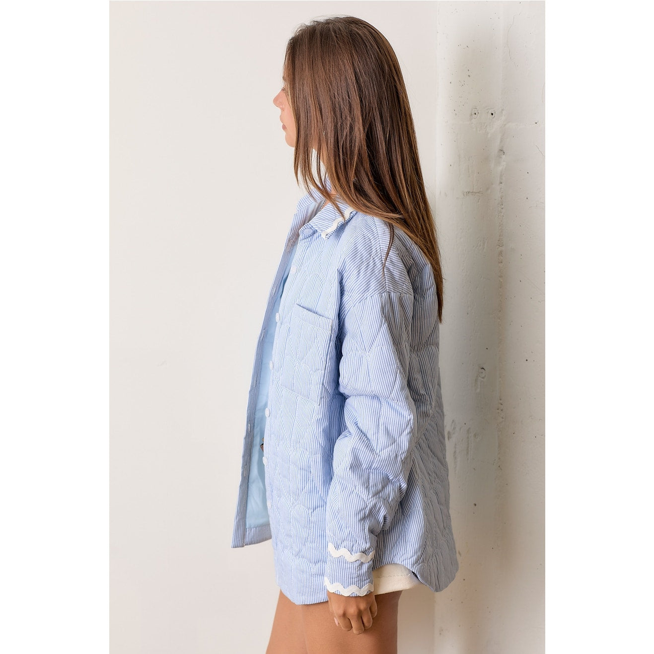 Blue Striped Quilted Shacket