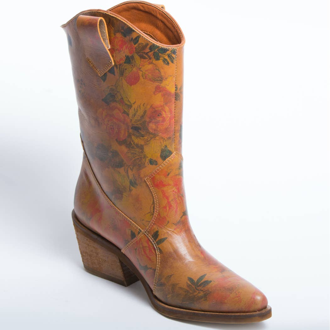 Santa Monica Tan Roses Leather Boots