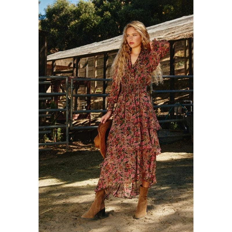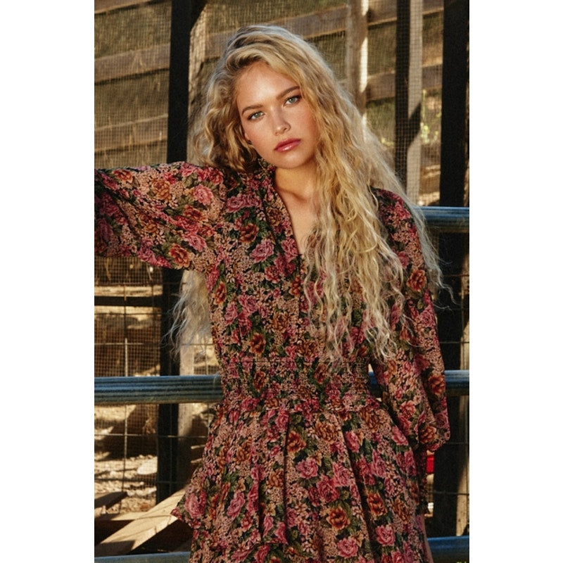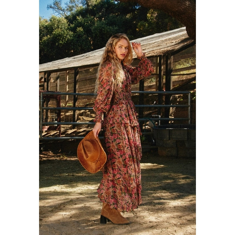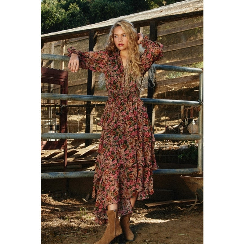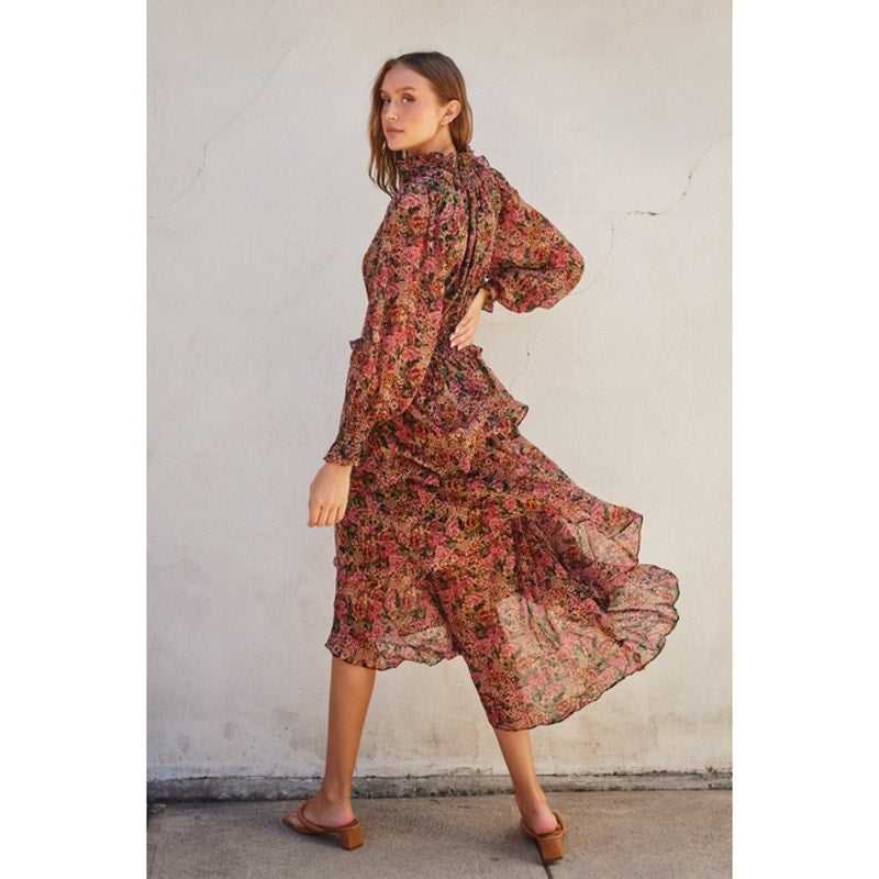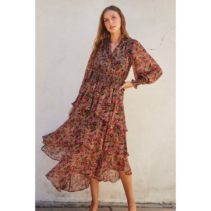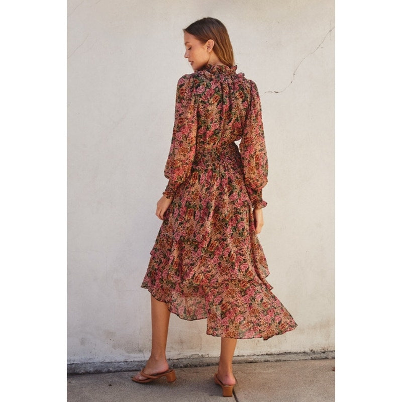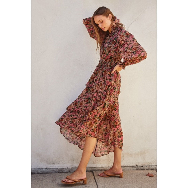 Vintage Rose Lurex Cinched Waist Ruffled Dress